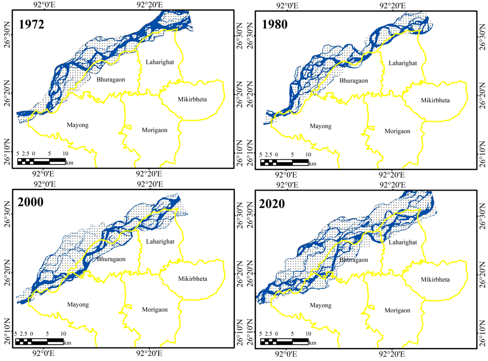 The geomorphological characteristics of the Brahmaputra floodplains provide an unending supply of fuel to the biopolitics of producing the myth of the ‘Bangladeshi’ and its imaginaries of hate and ‘invasion’ of Assam. The uncertain floodplains and impermanent chars have kept the peasants mobile, migrating in search of relatively safer areas within the river system or to the ‘mainland’ in search of existence and livelihood. Take, for instance, Laharighat block of Morigaon district, a Muslim-majority district that has a long history of settlement by peasants from eastern Bengal dating back to colonial times. Between 1955 and 2020, more than 30% of land in Laharighat was lost to the Brahmaputra, forcing residents to migrate for survival (Momin and Chakraborty 2021). While all the communities suffer from erosion, the implications of such suffering vary in terms of the religious affiliations of the victims. Muslim victims get transformed into ‘Bangladeshis’, identified as ‘illegal immigrants’ by state and civil society alike.