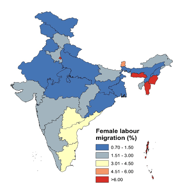 India exhibits a sharp and persistent North-South divide in female labour migration, one that mirrors broader differences in gender norms, labour markets, and household structures across regions.
