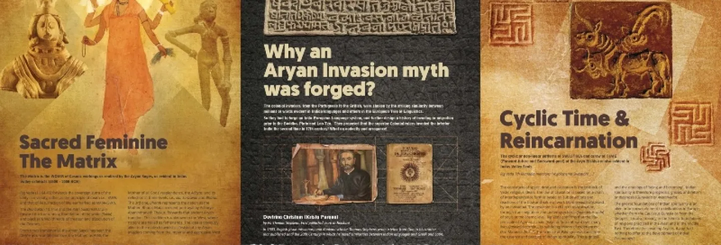 The calendar questions the currently accepted chronology. Among its faults, the authors say, is that the colonialists downgraded the “Altruistic and Cosmological foundations of the Vedas” and misinterpreted this foundation by “racial and genetic semantics.”