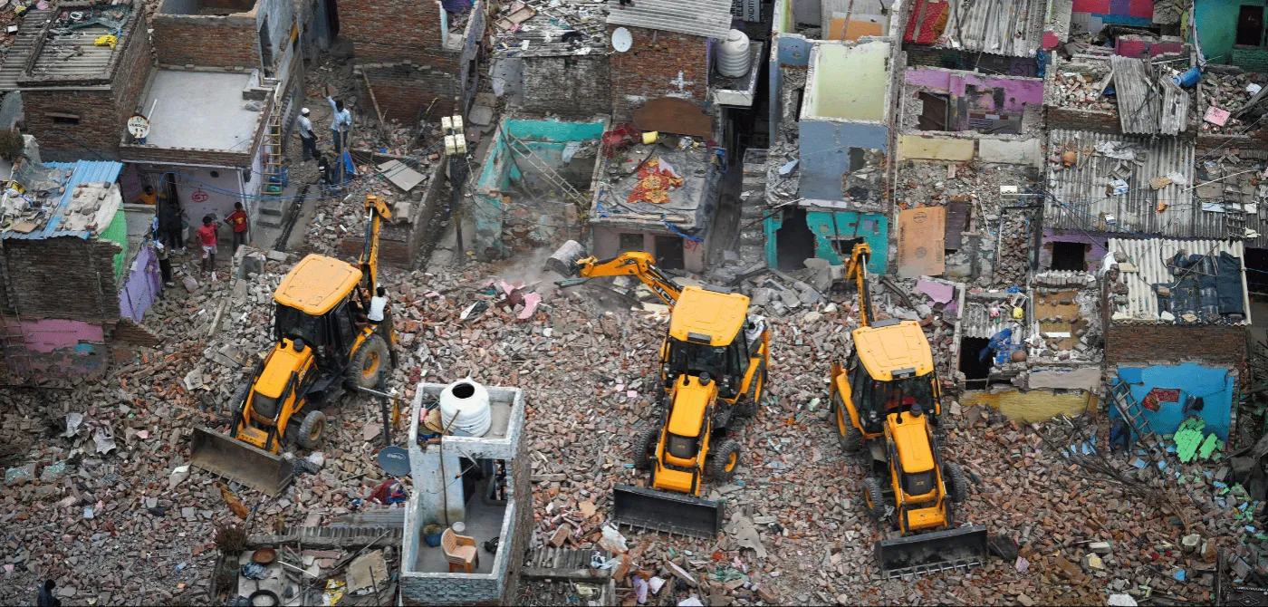 The ‘Bulldozer Raj’ while demolishing and evicting some, threatens the rest, and creates a climate of fear and instability for its potential victims.