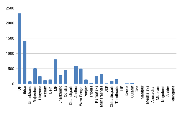 It is not widely appreciated how significant dowry murder is in homicides in India—it is a major cause of homicide in some states. In 2011, the last year for which we have Census data, there were 8,473 reported cases of dowry murder. This number constituted nearly 25% of all recorded murders in that year. Dowry murder was concentrated in the north Indian Hindi-speaking states of Haryana, New Delhi, Uttar Pradesh (UP), Madhya Pradesh (MP), Bihar, and Jharkhand, and the eastern state of Odisha. Almost 70% of the dowry murders in 2011 occurred in these states (Figure 1).