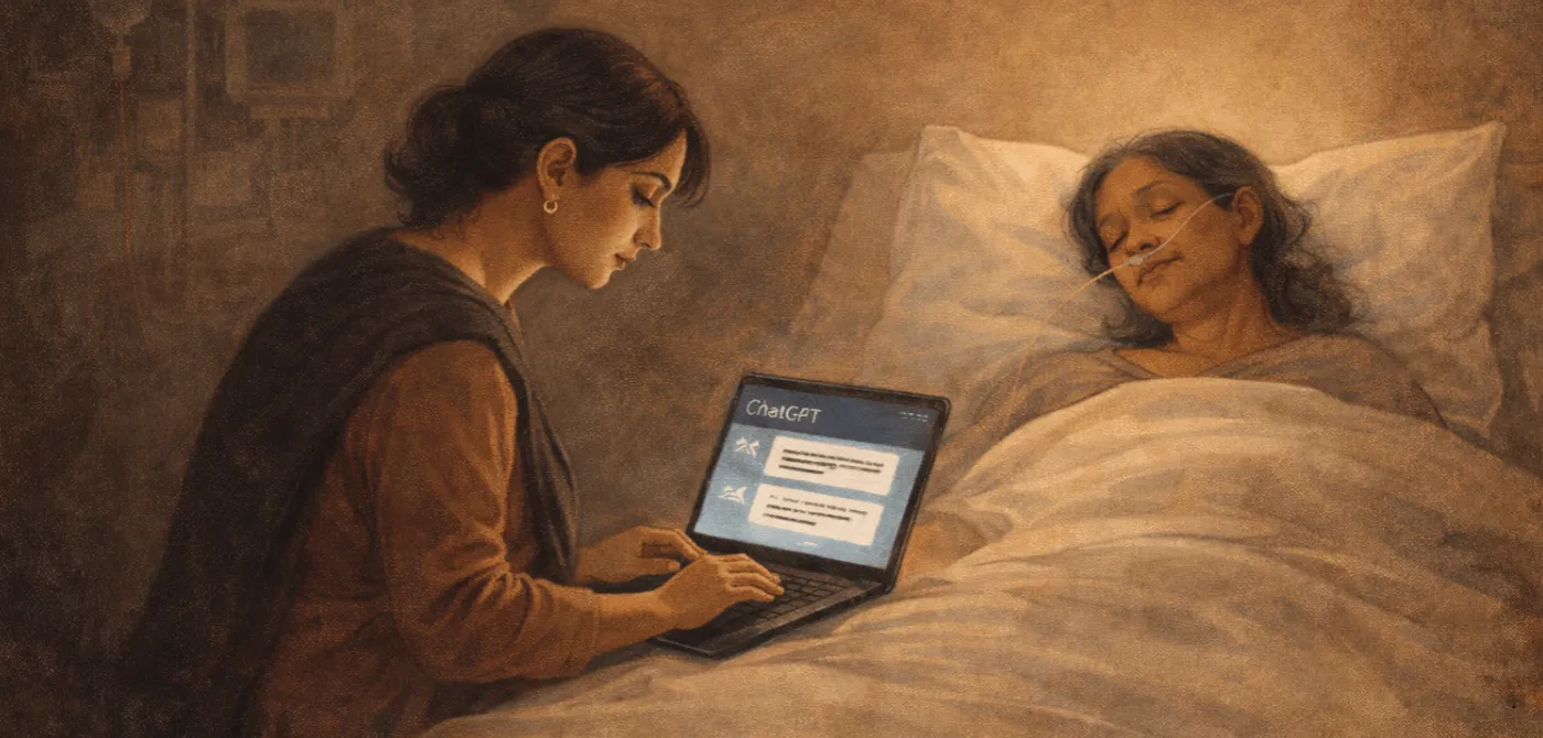 Should I then, against the doctors’ advice and her own wishes, rush her to a hospital? How much longer was I to be a mute witness to her suffering? These were questions that neither the doctors nor the new home nurse were able to answer with any certainty. There was only ChatGPT.